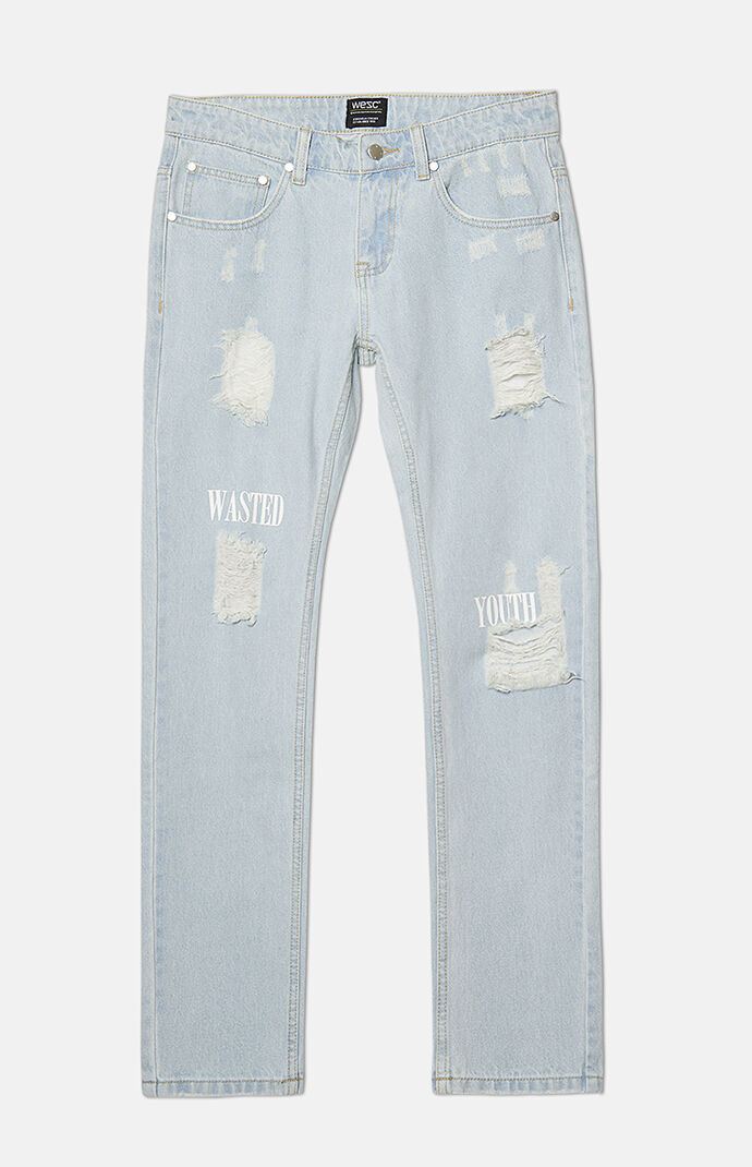 | [PN: 7332939718132] [SKU: 3526514] [ UPCorEAN: 7332939718132 | WeSC America Inc Mens Alessandro Deconstructed WY Skinny Jeans - Ivory size 36 Online Only! Keep your style fresh in wesc denim. The Alessandro Deconstructed WY Skinny Jeans have a 5 pocket construction, a deconstructed front, light wash, branded yellow back patch, wasted youth front leg print, a durable fabrication with ample stretch, and a versatile skinny fit leg. WeSC America Inc Mens Alessandro Deconstructed WY Skinny Jeans Ivory size 36 | FLink DLink | | [36]