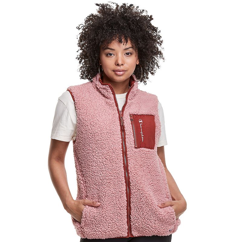 Cozy up to the cold with an extra layer wearing this women`s reversible sherpa vest from Champion. Cozy up to the cold with an extra layer wearing this women`s reversible sherpa vest from Champion. Reversible design with choice of sherpa or woven outer fabric 2 pocket Zipper frontFIT and SIZING 26 in. approximate length from shoulder to hemFABRIC and CARE Polyester Machine wash Imported Size Medium. Color Med Pink. Gender female. Age Group adult.