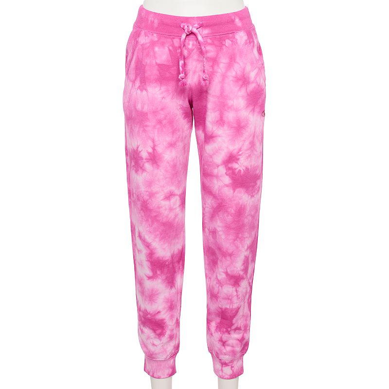 Let the good vibes roll in comfort and style with these women`s fleece joggers from Champion. Let the good vibes roll in comfort and style with these women`s fleece joggers from Champion. Warm and comfortable fleece construction 2 front pockets with ribbed detailing Ribbed waistband and cuffs Specialty scrunch tie dye techniqueFIT and SIZING 29 in. inseam Drawcord elastic waistbandFABRIC and CARE Cotton, polyester Machine wash Imported Size Medium. Color Pink. Gender female. Age Group adult. Material FleeceCotton Blend.