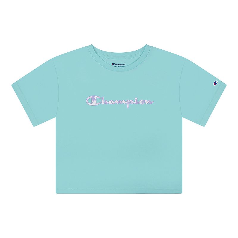 This Champion girls` tee features a cool tie dye script graphic. This Champion girls` tee features a cool tie dye script graphic. Tie dye script graphic Jersey construction Crewneck Short sleevesFIT and SIZING Boxy fitFABRIC and CARE Cotton, polyester Machine wash Imported Size Medium. Color Blue. Gender female. Age Group kids. Material Cotton Blend.