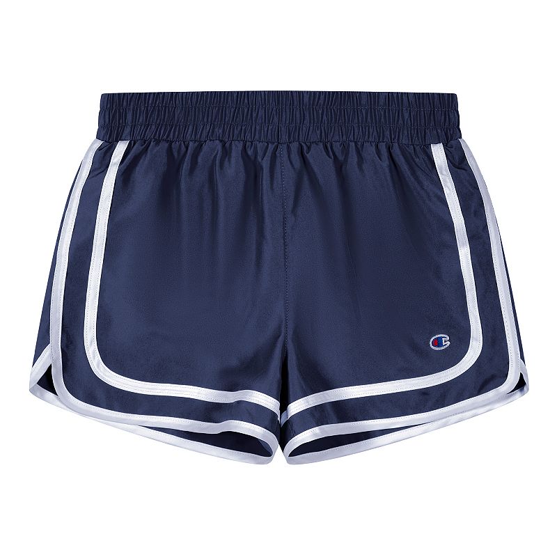 Refresh her active style with these classic and cool girls` shorts from Champion. Refresh her active style with these classic and cool girls` shorts from Champion. ``C`` patch detailFIT and SIZING Classic fit Elastic waistbandFABRIC and CARE Polyester Machine wash Imported Size Medium. Color Navy. Gender female. Age Group kids. Pattern Solid.