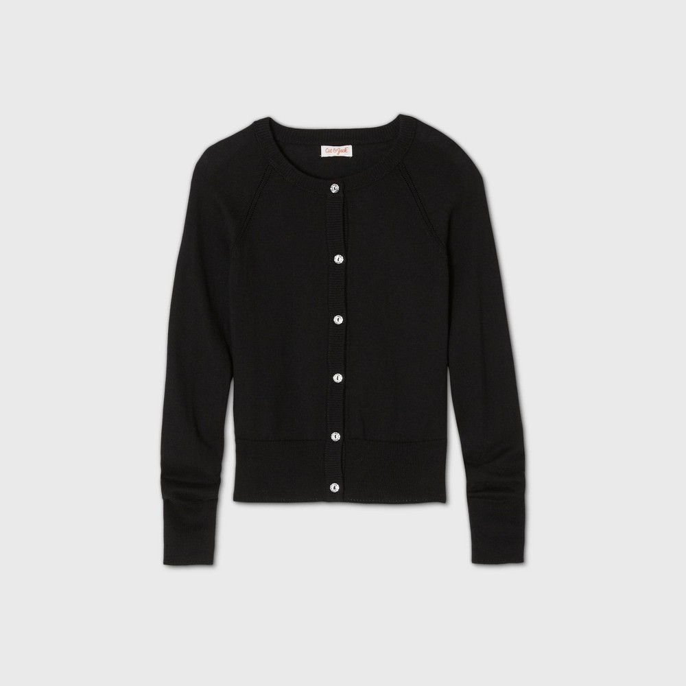 Girls' Cardigan Sweater - Cat and Jack Black XL Gender: female. Age Group: kids. Pattern: Solid. Material: Cotton.