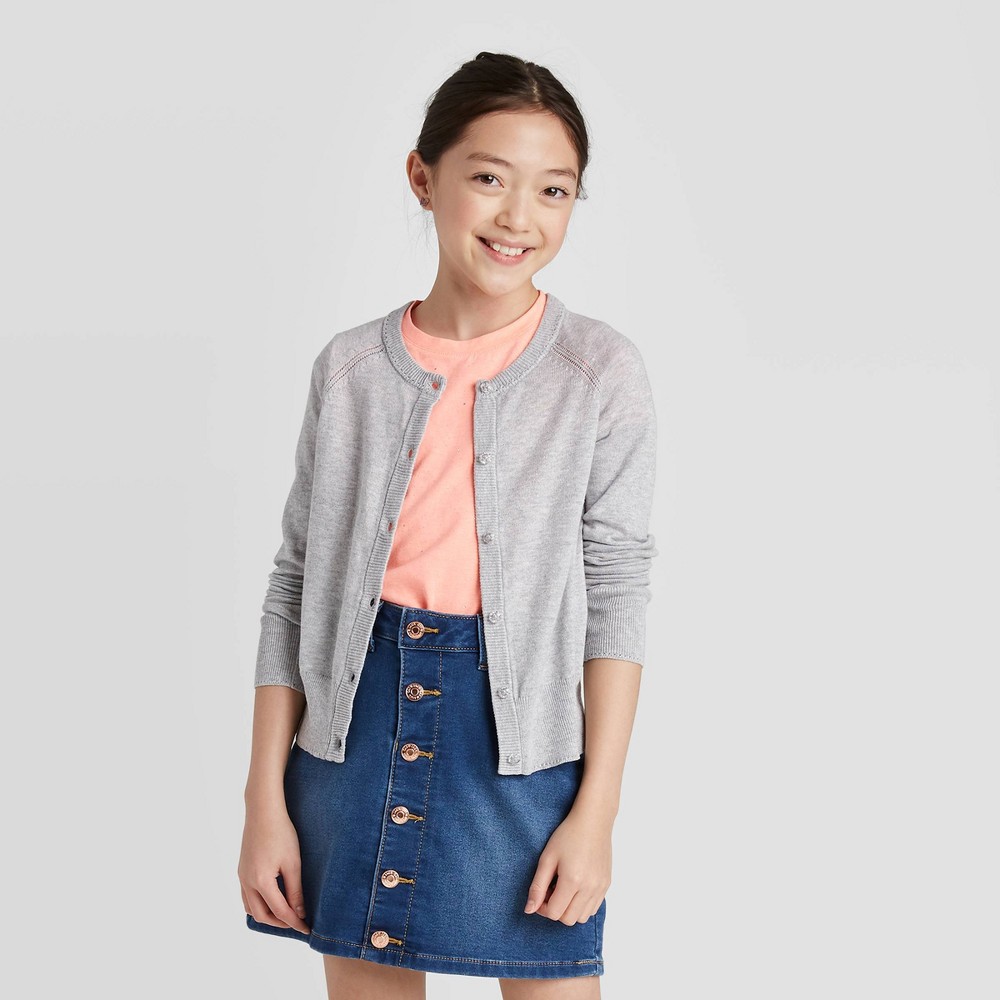 Girls' Cardigan Sweater - Cat & Jack Heather Gray M, Grey Gray