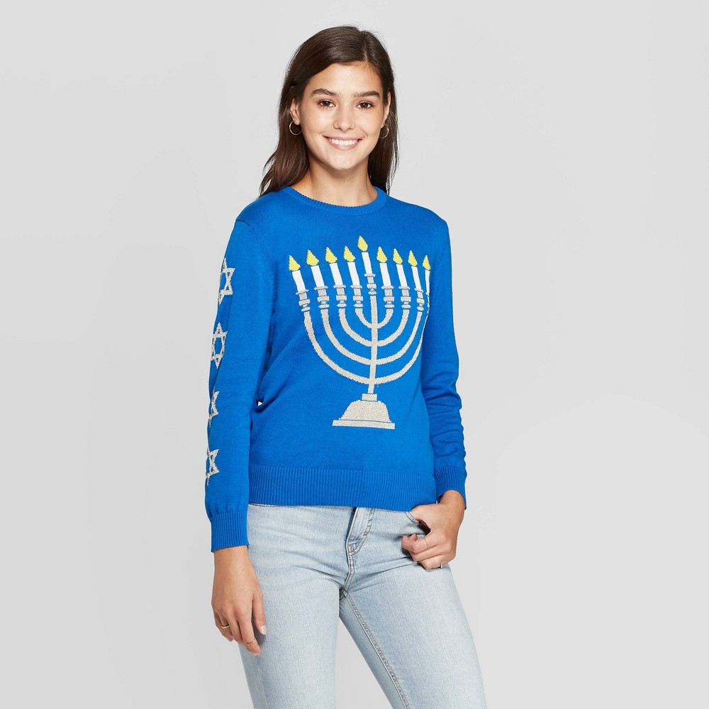 | Women's Menorah Light Up Long Sleeve Sweater (Juniors') - Blue M, Size: Medium Women's Menorah Light Up Long Sleeve Sweater (Juniors') - Blue M, Size: Medium Gender: female. Age Group: adult. Pattern: Solid. Material: Cotton. | Link | | M | [APPAREL > TOPS > Sweaters > Pullover sweaters] [Women] | 29.99 | 29.99 | Mighty Fine | HtmlUrl HtmlUrlAff Use Default Image Not Default Image AffName StoreName Category PartNumber CropW CropH CropX CropY